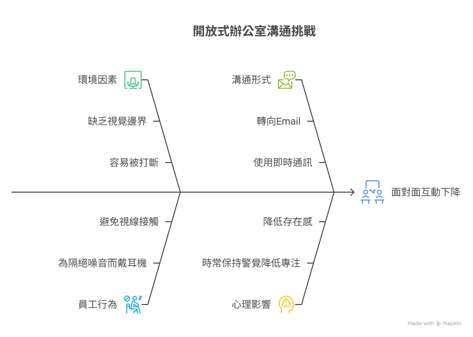 此外,哈佛商學院研究也指出,開放空間導入後,面對面互動反而下降,顯示其效果並非單純提升溝通。