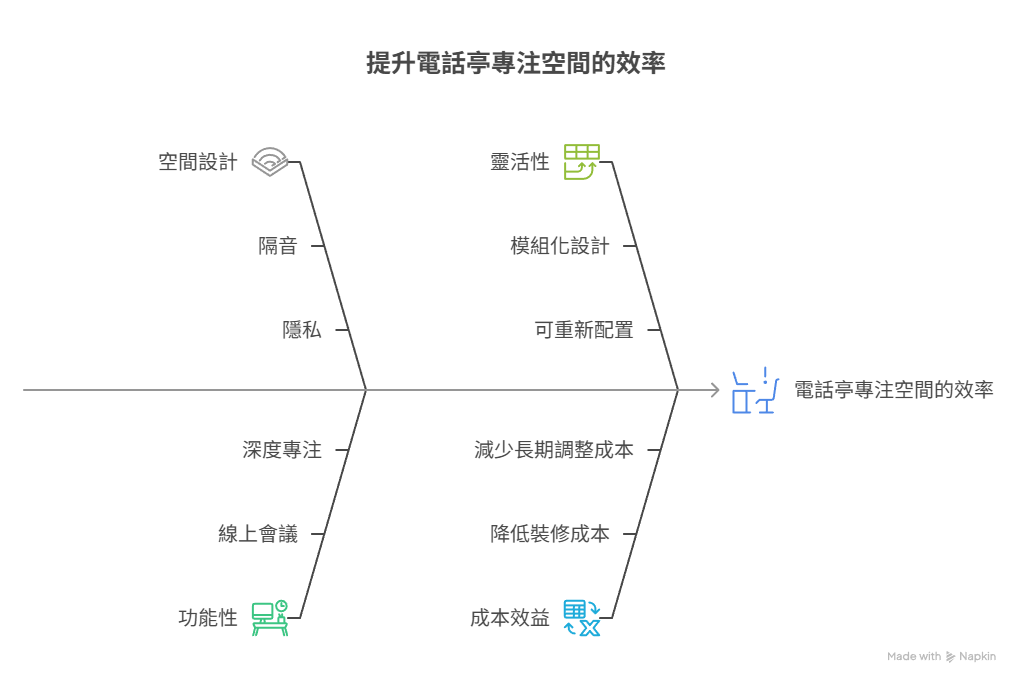 與傳統會議室相比,電話亭空間通常採用模組化設計,不需要大規模裝修即可導入,並能隨著企業搬遷或組織擴張而重新配置。對企業而言,這種高彈性的空間配置方式,也能降低長期辦公空間調整的成本。