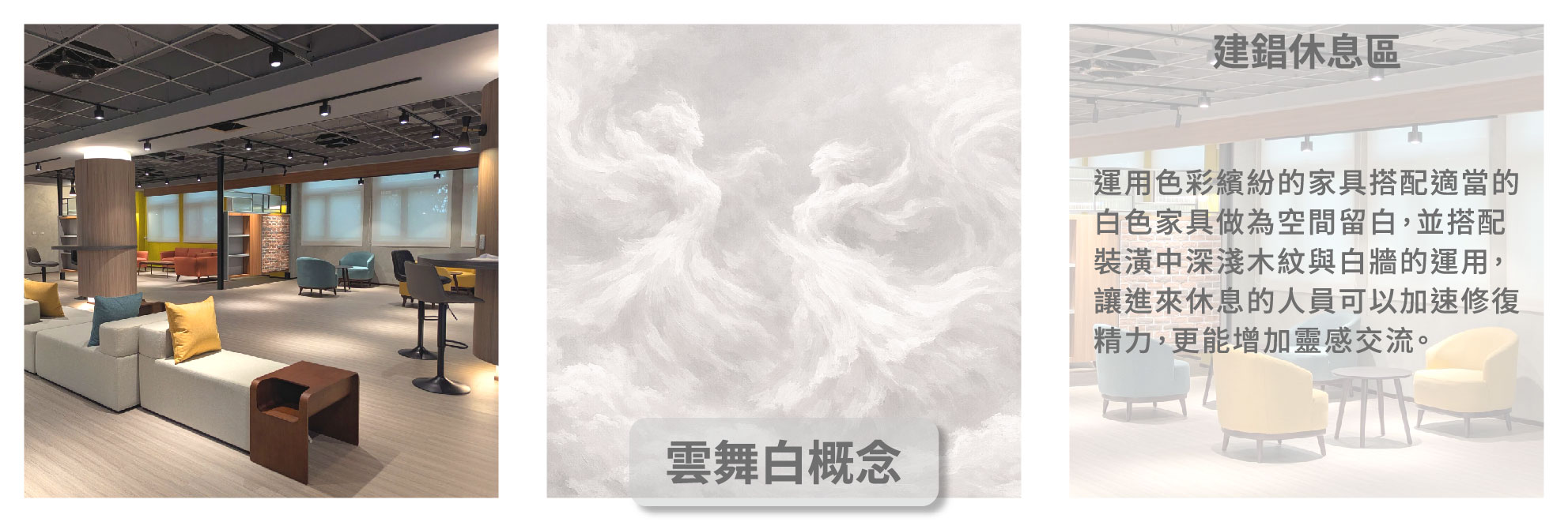 在建錩實業休憩區的案例中,我們秉持著「不打擾原有結構」的原則。透過家具的材質選擇與體積調度,我們重新定義了使用者的停留方式。