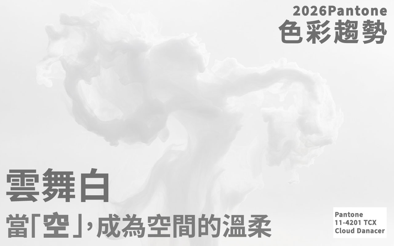 每年的 Pantone 代表色不僅是時尚趨勢,更是全球集體情緒的投影。2026 年 Pantone 提出的「雲舞白」(Cloud Dance),正好以柔和的色彩語言,延續了侘寂風追求的安定感。