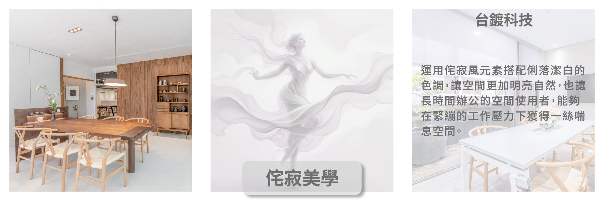 「侘寂」的核心在於留白、質樸,以及對「不完美」與「時間感」的接納。在傳統室內設計中,我們常習慣用裝潢去「定義」一個空間的功能,例如這裡必須是會議室、那裡必須是主管位。